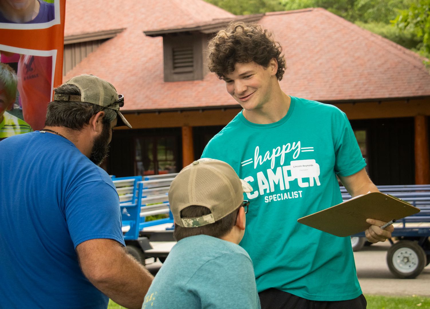 Staff greet families, direct traffic, help with luggage, and check in campers at stations on the front lawn. Health forms, medications, and Red Canoe accounts are handled at designated stations. Parents can stay until noon and are invited to enjoy a free pizza lunch and a tour of the camp.